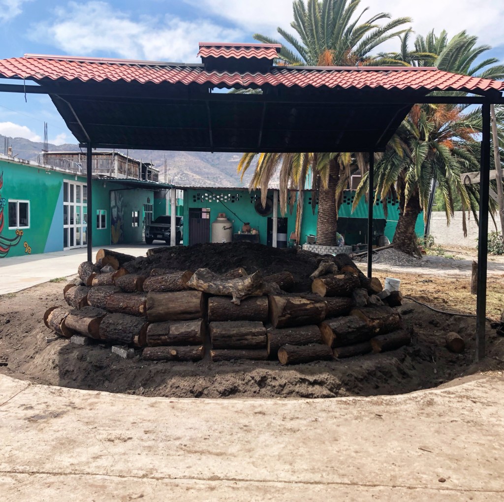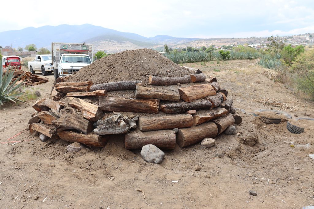 Comienzan por instalar la leña. Es madera muerta, aprobada por los “Reguladores”, esos que llegan y les revisan todo, desde donde saca el agave, como lo prepara y hasta lo que pone en las etiquetas; “disque para poderle llamar Mezcal a su mezcal…”