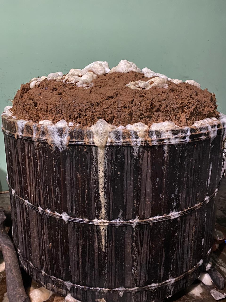 La formulación consiste en agregar agua fría a la tina en plena fermentación, para causar un choque térmico que dará una nueva vida a la que ya se encuentra ahí viviendo desde hace tres días. Después se remueve la mezcla para alimentar de oxigeno a las levaduras y bacterias que sobreviven al agua fría hasta crear una masa que terminaran de moldear a mano para “tapar” la cuba. Es bajo esa nueva cobertura de bagazo, donde se creará un clima ideal para que las diferentes levaduras y bacterias se multipliquen y alimenten, convirtiendo los azucares en etanol. Es un proceso que durará de seis a ocho horas y requiere de musculo, constancia y conocimiento.