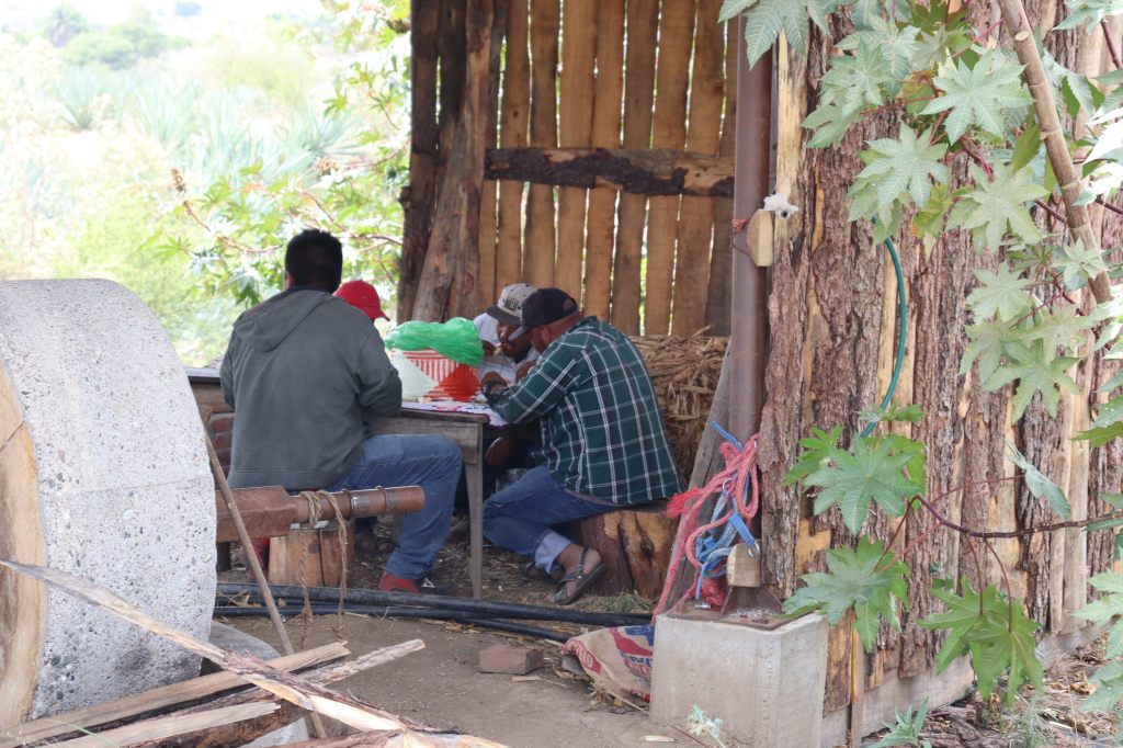 Hace tres días pusieron el agua tibia sobre la fibra molida del maguey cocido en las tinas, hoy van a formular. Será un proceso tranquilo pues el maguey espadín (agave Angustifolia) suele fermentar pasivamente y sin sobre saltos, a diferencia por ejemplo del agave Jabalí (agave Convallis), que es más intranquilo y solo se deja domar por maestros experimentados; Don Bernardo ha visto tinas desbordadas y palenques inundados y destiladores quebrados con ese agave tan peculiar también llamado marrano o jabalina.