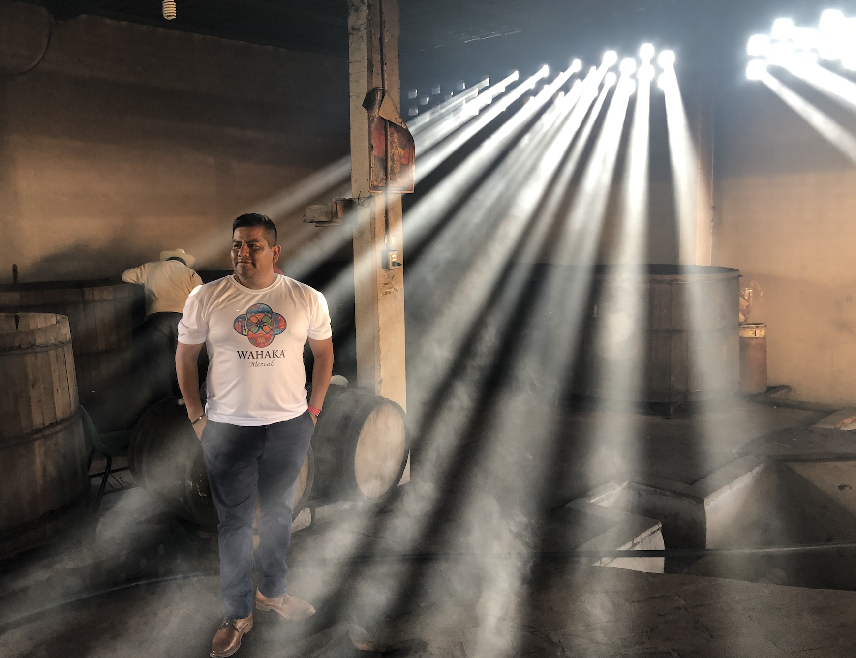 Los muchachos llegaron desde temprano para prenderle fuego a la leña que calentará las ollas de cobre que se encargarán de la destilación. El humo se levanta mientras es penetrado por los rayos del sol que se cuelan por algunos huecos en las paredes. Don Bernardo, como siempre ha llegado con el desayuno en mano. Hoy su mujer ha traído de la tienda pan dulce y ha preparado huevos revueltos, chocolate de agua y café de olla.