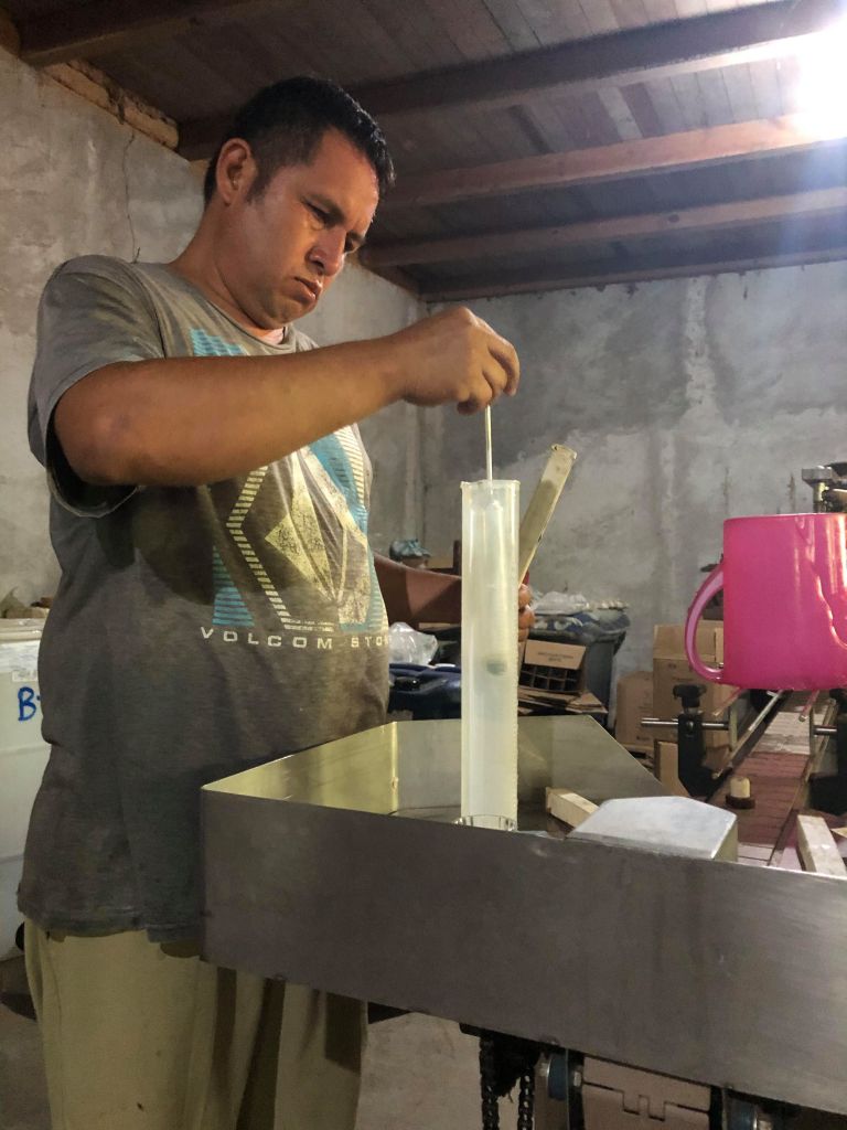 Las levaduras han dejado de comer, ya no queda azúcar, se ha trasformado en etanol y es hora de detener el proceso. La destilación no hará sino separar el espíritu del cuerpo, para luego transformarlo en liquido. Si Don Bernardo permitiese que el maguey se quedara más tiempo fermentando, las bacterias la darían un sabor lactoso y un olor “atepachado” al producto terminado.