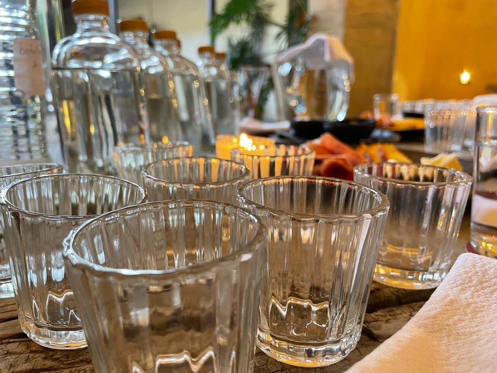 Tras una larga cata que comenzó muy seria y que terminó entre risas y bromas causadas por la ingestión de tanto mezcal, cada participante compartió sus opiniones. Julia, con mucha experiencia en esto, llevó la reunión con disciplina y orden. Se encargó de que las opiniones sobre cada destilado fueran anotadas y que se siguieran las normas, por ejemplo, usó 60 diferentes copas “impitoyable” – una por destilado para cada uno de los cinco participantes- se visitó cada muestra al menos tres veces y todas las bebidas fueron calificadas del uno al seis en cinco diferentes categorías.